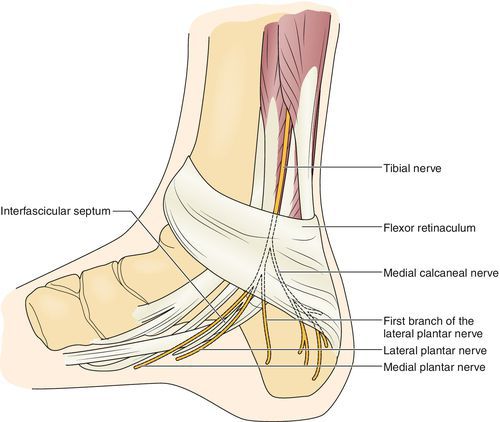 | Медиальный подошвенный нерв | Медиальная часть стопы‚ пальцев I–II | Чувствительность‚ двигательная функция |