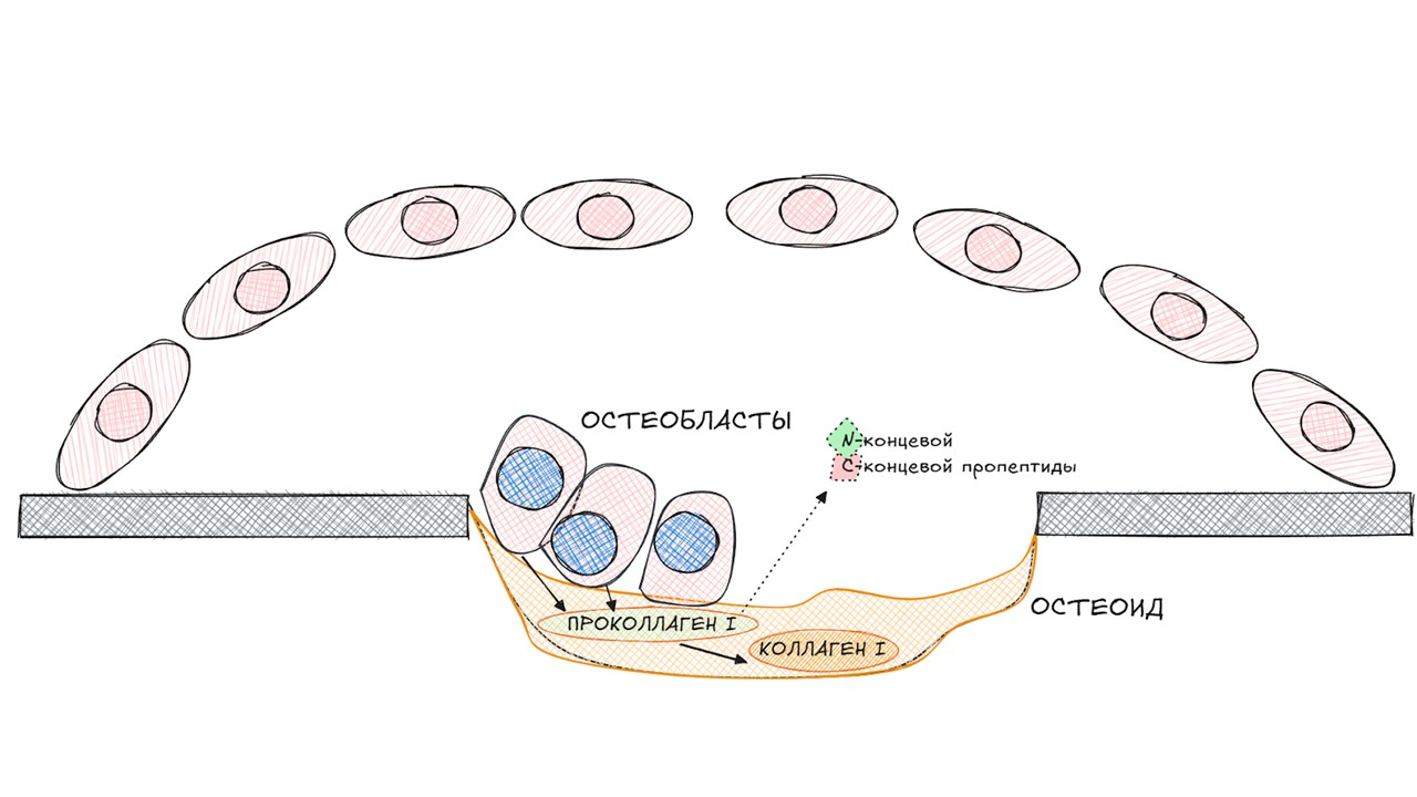 - Образование новой костной ткани. После этого остеобласты формируют новую костную матрицу, которая затем мінерализуется, укрепляя скелет.
